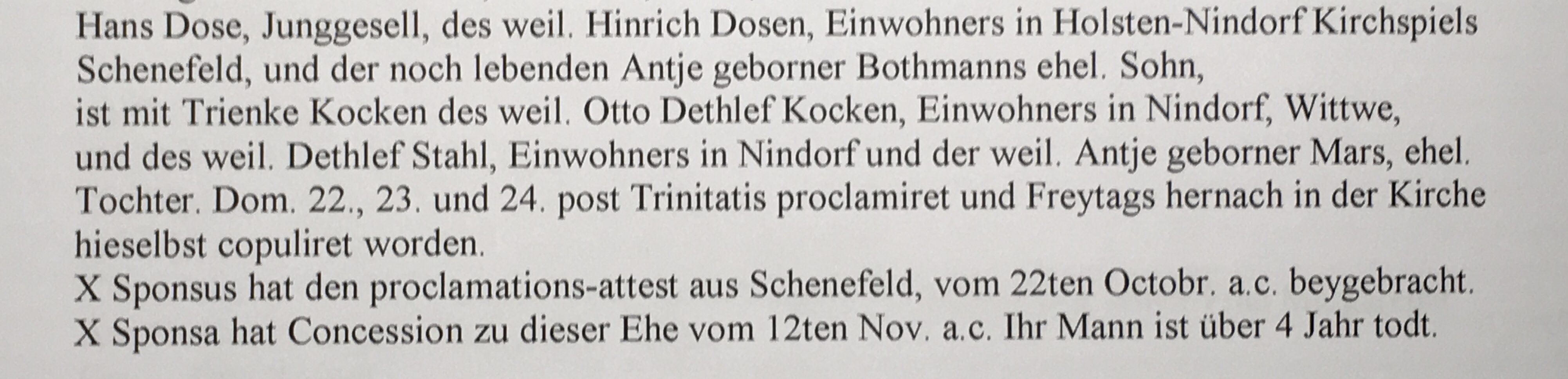 Erste Dokumente: Hans Dose: Transkript
